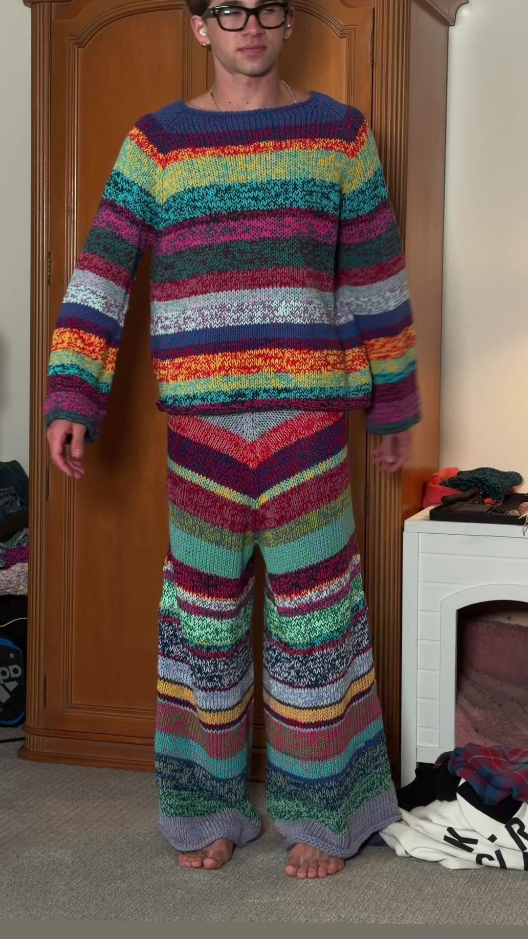 COTTON COLORFUL HAND-KNIT SET (SWEATER & PANTS)